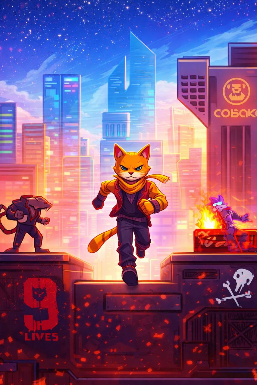 A musical runner where cats battle rats in a cyberpunk style